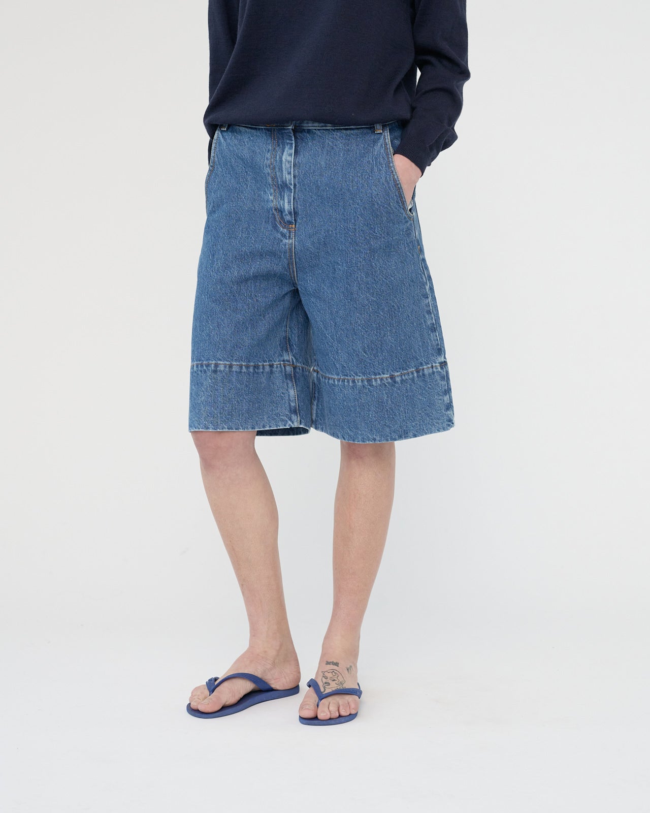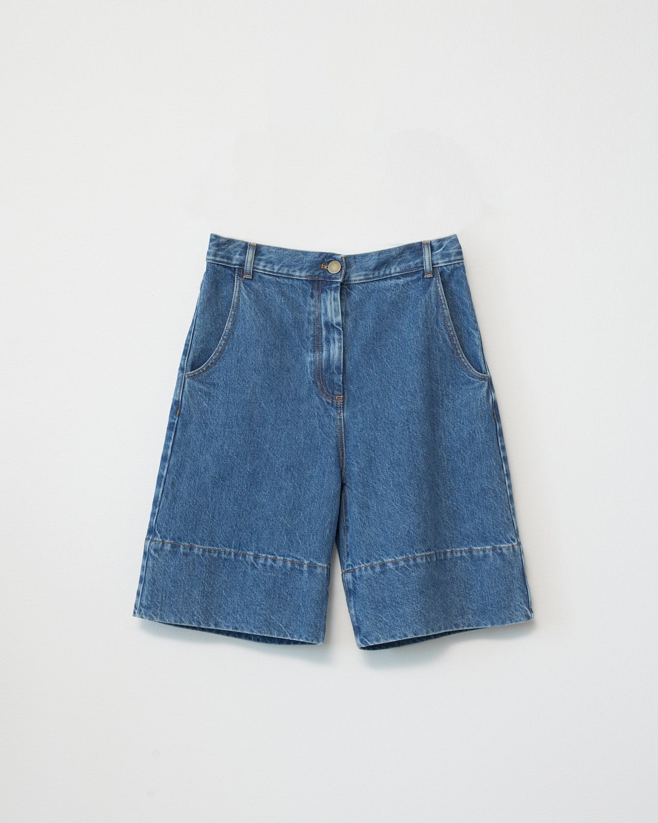 Cleaning: Denim lasts longer when washed infrequently. We recommend machine washing on a delicate, low spin cycle using a color-appropriate gentle detergent. Turn inside out before washing and always wash dark denim with similar dark colors as dye can transfer in the wash. Do not tumble dry.