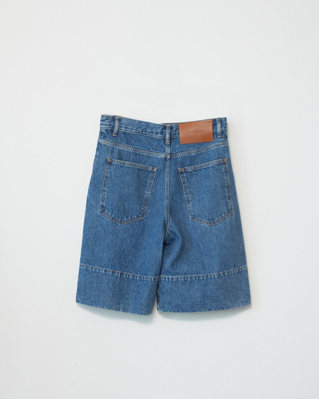 Hemp and cotton shorts with wide legs. Side and back pockets and button closure.